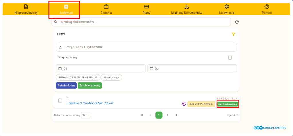 Jesteś modułem rozpoznawania dokumentów księgowych w CRM.