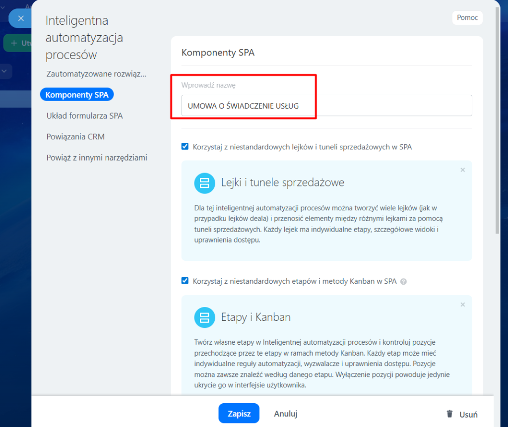 Smart-procesy pozwalają tworzyć nowe elementy CRM i dostosowywać je do własnych potrzeb: