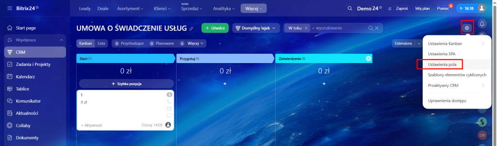 W polu „Encja Bitrix” wybierz odpowiedni SPA.