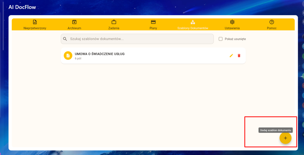Przejdź do aplikacji i otwórz zakładkę „Szablony dokumentów”.