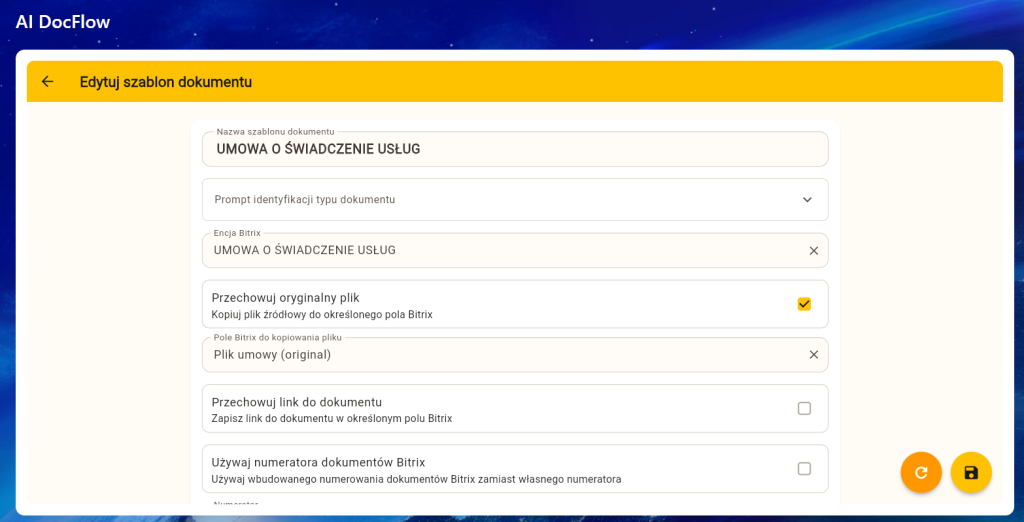 - Wprowadź prompt (instrukcję dla AI) — jak rozpoznawać dokument