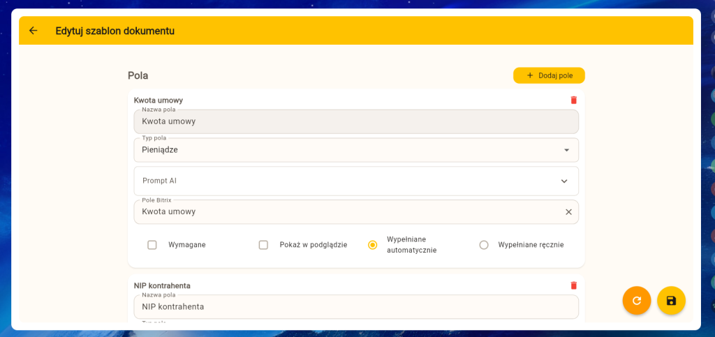 Należy utworzyć pola, które będą wypełniane na podstawie danych z dokumentu.